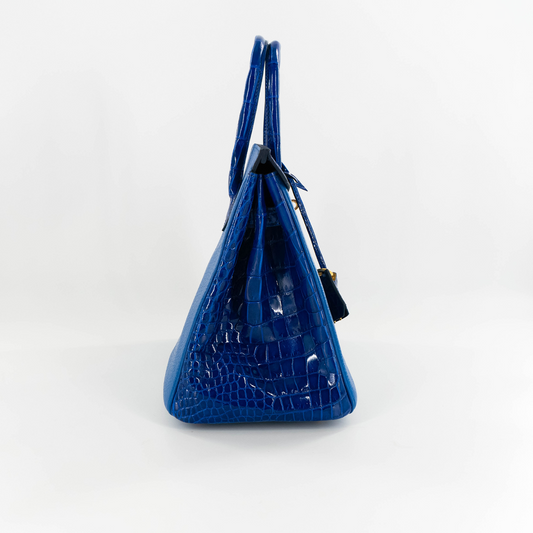 Duchess Handbag in Royal Blue Crocodile Belly Skin & Leather