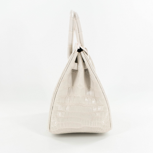 Duchess Handbag in Matte White Crocodile Belly Skin