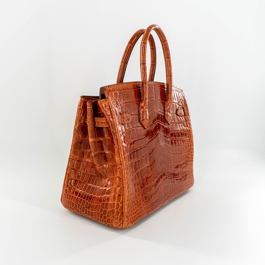 Duchess Handbag in Shiny Cognac Crocodile Belly Skin
