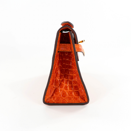 Princess Petite Handbag in Orange Shiny Crocodile Belly Skin