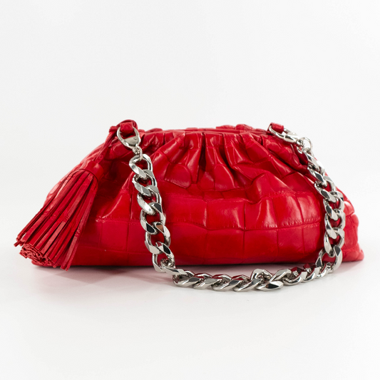 Cloud Clutch in Red Crocodile Belly Skin