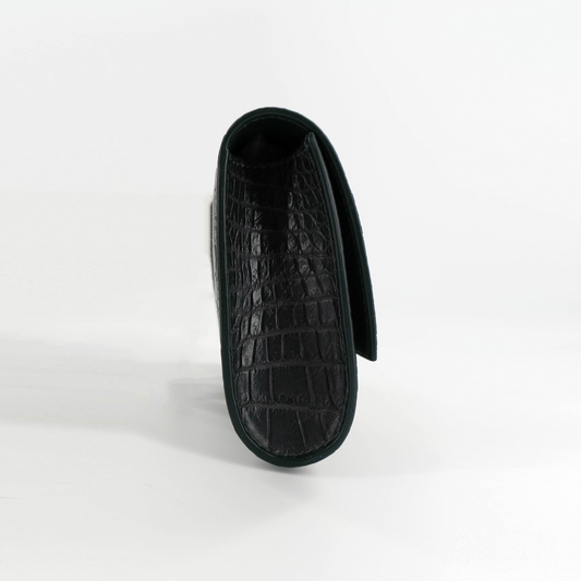 Flat Clutch in Shiny Black Crocodile Belly Skin