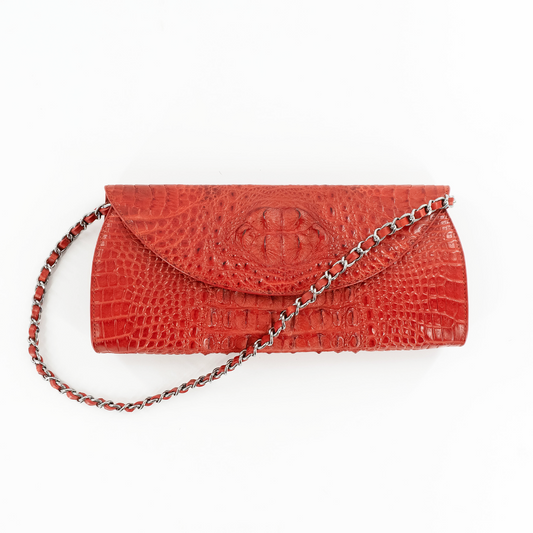 Carmen Clutch in Red Crocodile Belly Skin
