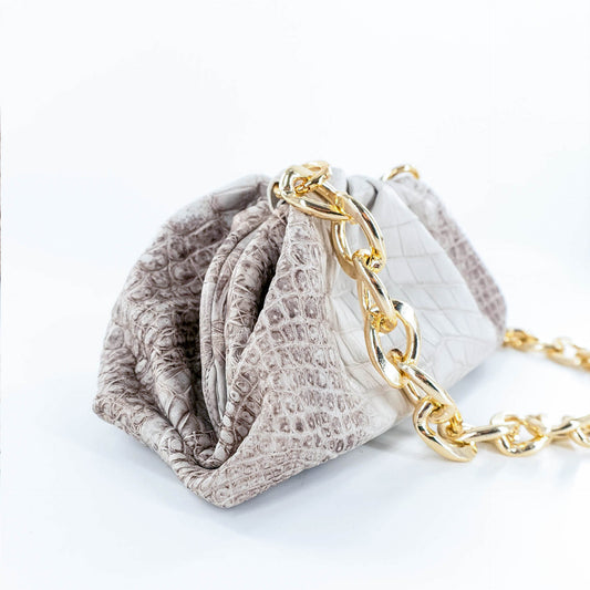 Cloud Clutch in Light Beige Crocodile Belly Skin
